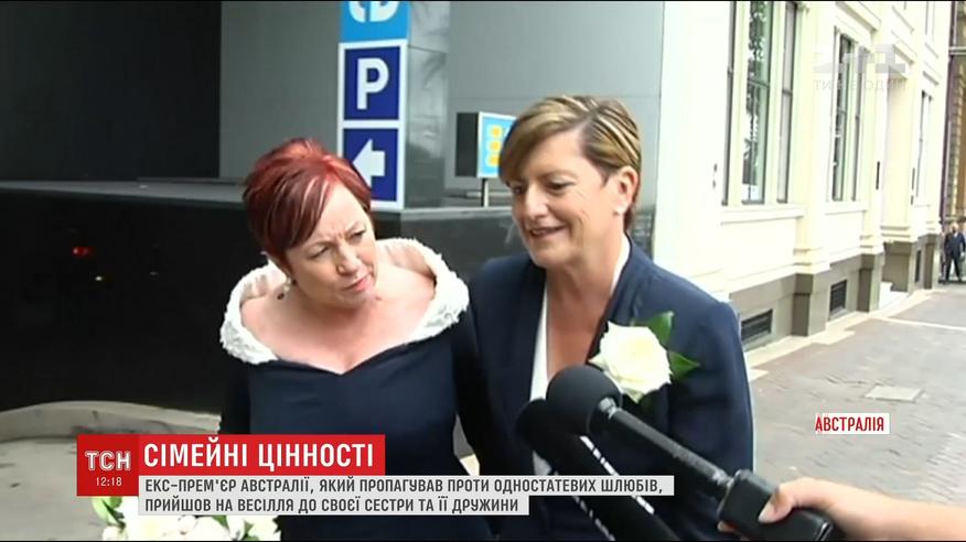 Екс-прем'єр Австралії, який виступав проти одностатевих шлюбів, прийшов на весілля сестри