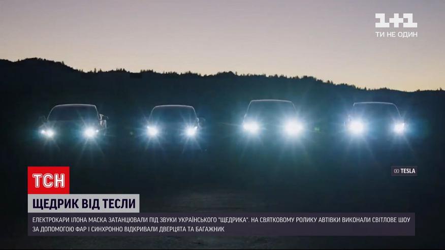 Електрокари Ілона Маска затанцювали під звуки українського "Щедрика". Святковий ролик оприлюднили на сторінці компанії у "Твіттері". На відео 4 автівки виконують світлове шоу за допомогою фар у супроводі музики Миколи Леонтовича, а в кінці машини ще й синхронно відкривають дверцята та багажник у такт пісні.