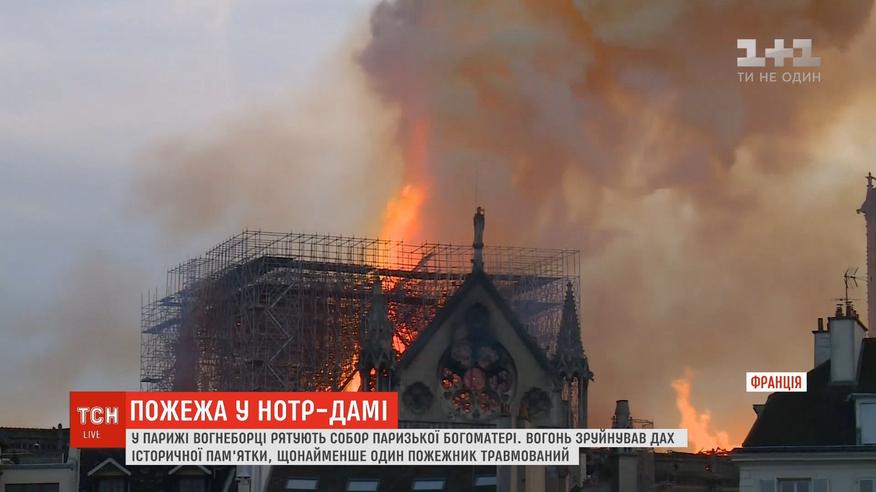 Нині вогнеборцям вдалося взяти полум'я під контроль, однак, кілька осередків ще палають. Наразі відомо, що один з пожежників отримав травми під час гасіння. Полум'я, яке охопило найвідомішу будівлю Франції, знищило шпиль і дах собору. Припускають, що займання сталося через реставраційні роботи.