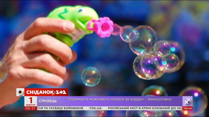 Сьогодні о 17 годині на Пішохідному мосту в Києві стартує Фестиваль мильних бульбашок. Вони символізують прощання з безтурботним літом. Вхід на мильне свято безкоштовний, головне - прихопити мильні бульбашки, і побільше. А в Запоріжжі День знань розпочнеться з ранкової дискотеки. Старт о 8:30 на Студенській площі на території студмістечка Запорізького національного університету.