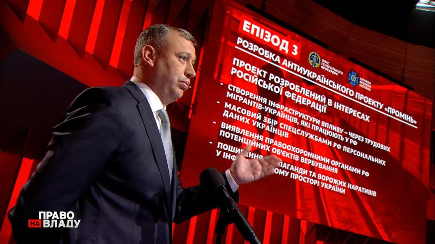 У "Право на владу" - перший заступник Генерального прокурора Роман Говда. Політик відповів на питання ведучої про фінансування тероризму фірмами, які належать Медведчуку. За його словами, Крим – це не терористична організація, а тому відповідно до Кримінального кодексу, такі звинувачення не можливі.
