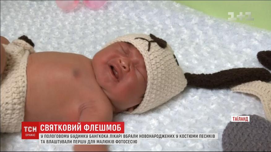 Для всіх немовлят зв'язали маленькі костюмчики песиків, адже це символ прийдешнього року, і кумедні шапочки. Просто у палаті дітям влаштували першу в їхньому житті фотосесію - світлини лікарі планують подарувати батькам на Новий рік.
