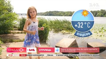 А далі наша наймолодша ведуча Фрося розповість, якої погоди чекати на вихідних. Та як правильно купатися, щоб не нашкодити здоров'ю. Дивімося.