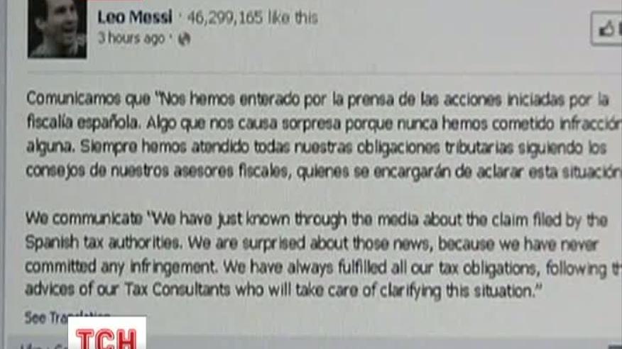 Нападника Барселони та збірної Аргентини звинувачують у тому, що той приховав від іспанської казни 4 мільйони евро. Зірка спорту разом із батьком заборгували цю суму впродовж чотирьох років. Футболіст суддям заперечив через фейсбук.