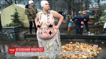 Гола активістка "Фемен" висловила протест у таборі Саакашвілі