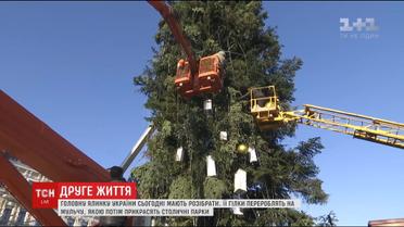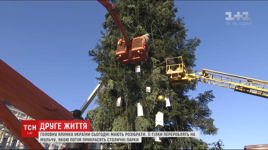 Хвою новорічного дерева подрібнять. Цю мульчу використовуватимуть для столичних парків. Стовбур ялинки розпиляють на сувеніри та продадуть. Вторговані гроші обіцяють передати лісництву. Загалом неоновий новий рік організатори називають рекордним. Підрахували, що за три тижні святкове містечко в центрі Києва відвідали 4 мільйони 700 тис. людей, які випили 200 тонн глінтвейну.