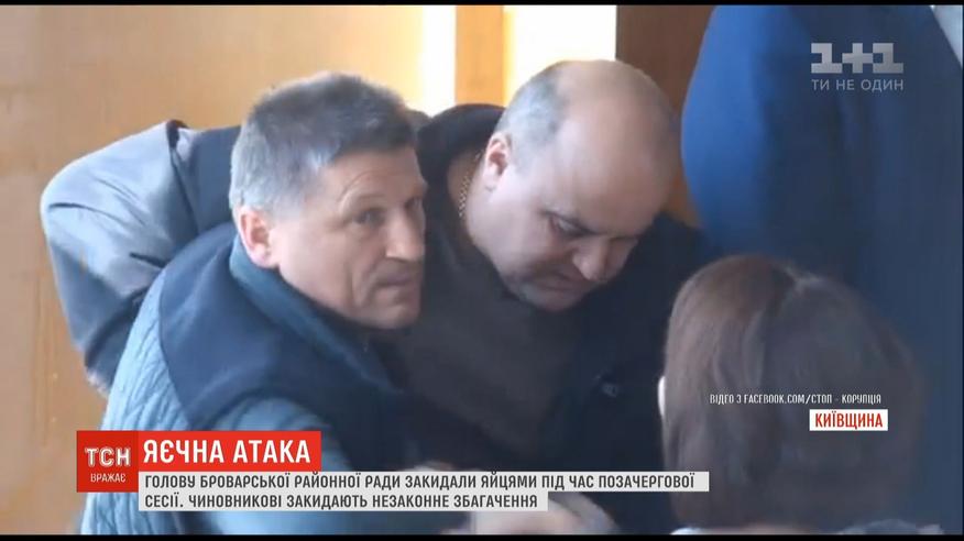 Сталося це під час позачергової сесії. Голова райради Сергій Гришко сидів у президії, як раптом в нього полетіли яйця. Він спочатку заховався за трибуною, а потім готовий був відбиватися. Поліція зупинила сутичку.