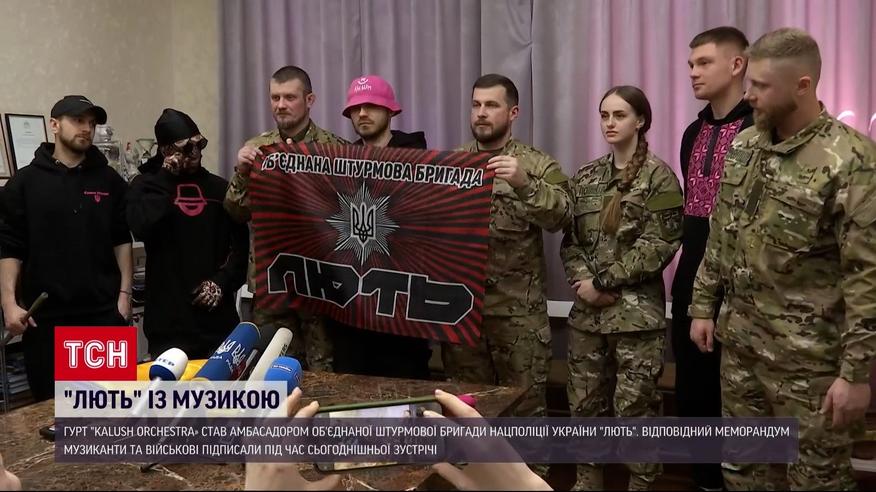 Бригада наступу "Лють" отримала музичного амбасадора. Ним став Гурт Kalush Orchestra. Все офіційно, відповідний меморандум співпраці музиканти підписали із керівником об’єднаної штурмової бригади Нацполіції. Усе задля популяризації та інформаційної підтримки українських військових. І не лише в Україні, а й за кордоном зокрема. Під час зустрічі музиканти передали бійцям знаменитий рожевий капелюх KALUSH із підписами. А в замін отримали два прапори, також із підписами, від добровольців. Однією із місій для амбасадорів є і благодійна діяльність. І залучення коштів на користь військових, а також цивільних.