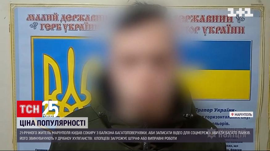 Кидав з балкона сокиру заради лайків у TikTok. Відео, на якому хлопець із Маріуполя виконує перфоманс, розлетілося соцмережами. В поліцію звернулись саме обурені користувачі, що побачили ролик. Правоохоронці розшукали хлопця і з'ясували: сокиру кидав 21-річний маріуполець лише заради власної популярності у соцмережі. На хлопця склали протокол, його обвинувачують у дрібному хуліганстві.