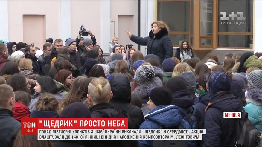 На головній площі Вінниці відомий на увесь світ "Щедрик" заспівали в півтисячі голосів. Понад два десятки професійних хорів з різних куточків країни у такий спосіб відзначили 140-ву річницю від дня народження автора однієї з найпопулярніших у світі різдвяних мелодій - композитора Миколи Леонтовича. "Щедрик", хоч і непростий для виконання твір, та усі хористи його добре знають, тож репетиції спільного співу не робили.