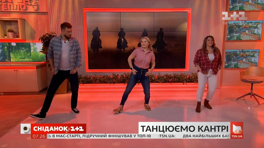 Фітнес-тренер Ксенія Літвінова навчить спалювати калорії під драйвовий танець кантрі. У рамках челенджу "Руйнівники млинців" Ксенія також підготувала три вправи зі стільцем для зміцнення м'язів спини.