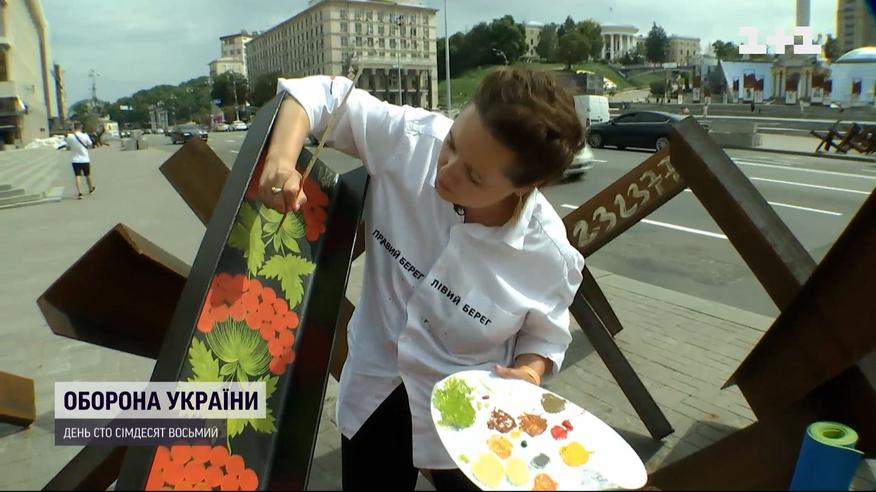 Протитанкові їжаки розквітли. А «зацвісти» петриківським розписом їм допомагає киянка Варвара Логвин. Уже 10 днів дівчина працює над оборонним їжаком на Майдані Незалежності. І за цей час іржу на ньому встигли змінити насичені грона калини на зеленому листі. Яке значення в свої малюнки вкладає мисткиня і коли протитанковий їжак буде готовий «розпустити» свої квіти повністю - дивіться в сюжеті.