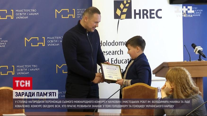 У Києві нагородили переможців сьомого Міжнародного міждисциплінарного конкурсу наукових і мистецьких робіт імені Володимира Маняка та Лідії Коваленко. Конкурс об’єднує школярів і вчителів, студентів, аспірантів і молодих науковців, які прагнуть розвивати знання у темі Голодомору та геноциду українського народу.