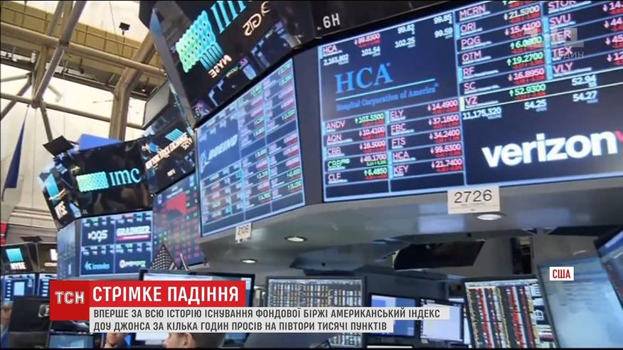 Історичне падіння: американський індекс Доу-Джонса просів на півтори тисячі пунктів