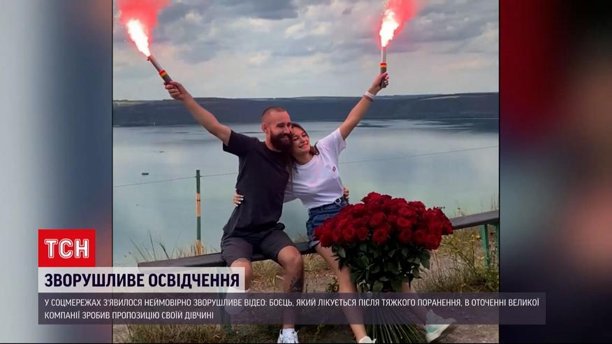 У соцмережах днями з'явилося неймовірно зворушливе відео. Тяжкопоранений чоловік - в оточенні великої компанії робить пропозицію дівчині. Кореспондентка ТСН вже встигла познайомитися з головними героями. Хто ці двоє? І головне - чи сказала дівчина "так" – дивіться!