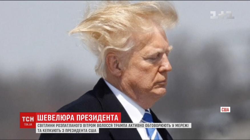 Під час подорожі американського очільника до Західної Вірджинії здійнявся сильний вітер й розтріпав президентові волосся. Фото одразу ж облетіли усі соцмережі. Американці кепкують й усе гадають, чи справжня у їхнього очільника шевелюра, й дають поради, до якого перукаря краще звернутися.