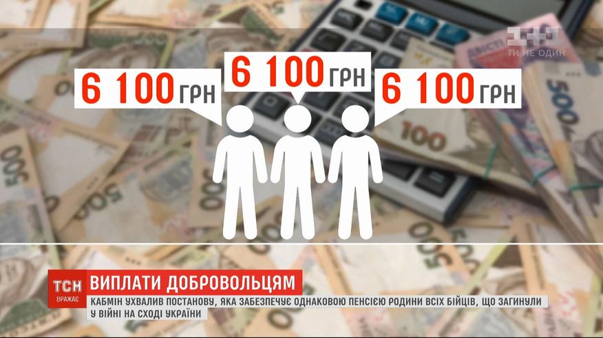 Кабмін ухвалив постанову, яка забезпечує однаковою пенсією родини всіх бійців, що загинули у визвольній російсько-українській війні, яка сьомий рік точиться на Донбасі. Від серпня сім'ї героїв мають отримувати по 7800 гривень. Якщо пенсійні виплати через утрату годувальника в родині отримує двоє людей або ж більше, то кожен матиме право на 6100 гривень на місяць. Та найважливіше те, що відтепер на ці виплати матимуть однакове право родини військовослужбовців ЗСУ, МВС, Нацгвардії та добровольчих батальйонів. Зокрема, "Правого сектору", "Азову", "Донбасу" тощо.