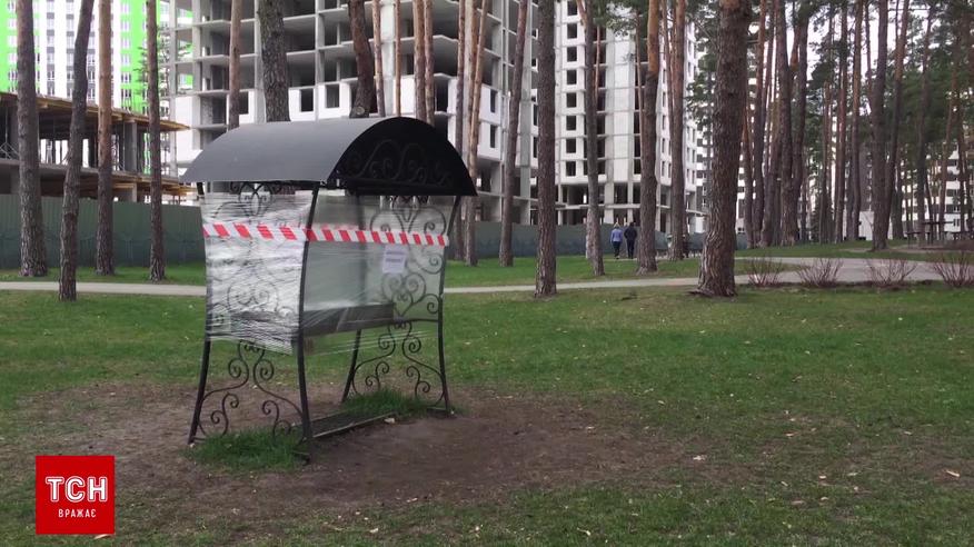 Карантин у Київській області: в Ірпінському парку заклеїли плівкою всі атракції