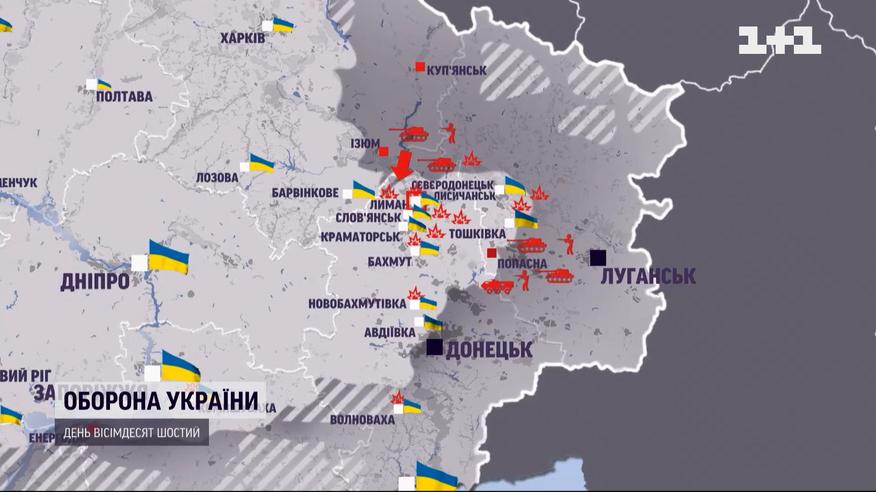 Ситуацію на фронтах російсько-української війни нині така: найважчі бої - на Лиманському та Слов’янському напрямках, також у районі Сєвєродонецька. Ворог завдав ракетного удару по Лозовій на Харківщині - знищено щойно відреставрований будинок культури. Є постраждалі - в тому числі дитина. Противник накопичує сили у Попасній та на Лиманському напрямку - аби спробувати взяти у кільце Сєвєродонецьк та Лисичанськ. Веде обстріли південно-західніше Ізюма, намагається наступати на Слов’янському напрямку. Райони Лимана, Бахмута та Сєвєродонецька - під постійними ударами артилерії. У Сєвєродонецьку нелюди влучили у школу - загинуло щонайменше троє мирних жителів.