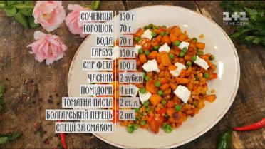 Яскраво, корисно та надзвичайно смачно. Руслан Сенічкін приготував кашу із сочевиці на пательні. Занотовуйте рецепт: сочевиця – 150 г, горошок – 70 г, вода – 70 г, гарбуз – 150 г, сир фета – 100 г, часник – 2 зубки, помідор – 4 шт., томатна паста – 2 ст. л., болгарський перець – 2 шт. Спеції додавайте за смаком. Смачного!