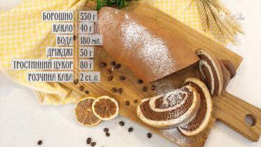 Руслан Сенічкін продовжує ділитися своїми рецептами духмяної випічки. Сьогоднішня страва не залишить вас байдужими, адже вона не лише смачна, а й надзвичайно красива візуально. Для приготування кавового рулету нам знадобляться такі інгредієнти: 550 г борошна, 40 г какао, 180 мл води, 50 г дріжджів, 80 г тростинного цукру, 2 ст.л. розчинної кави.