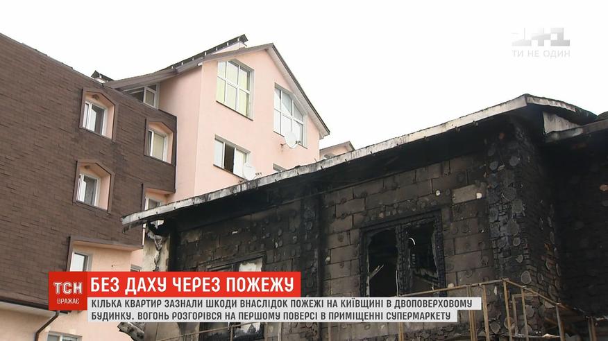 Кілька квартир зазнали шкоди через пожежу у супермаркеті під Києвом