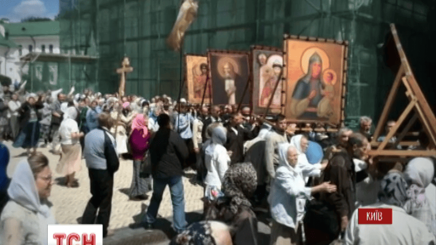 Пікетувальники намагались зупинити хресний хід проти євроінтеграції, під час якого нібито збирались створили “Київську народну республіку”. "Сбербанк Росії", розташований неподалік Лаври, натовп закидав зеленкою і бруківкою.