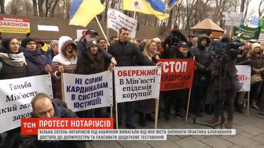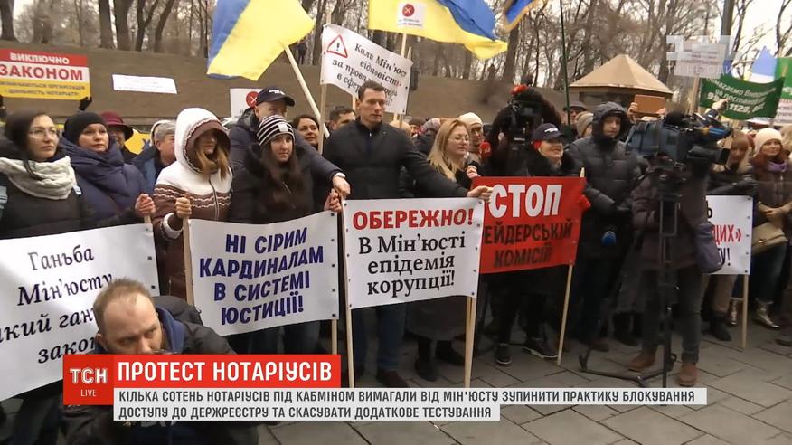 Вперше в українській історії на мітинг вийшли нотаріуси. Протестувальники скаржаться на чиновників Мін'юсту, які нібито блокують роботу нотаріусів через дрібні порушення, а потім вимагають проходити тестування для підтвердження кваліфікації. На думку мітингарів, така схема спонукає до корупції. Тому погрожують загальнонаціональним страйком.