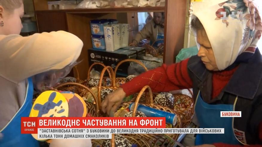 Сотні банок із домашною консервацією, салом, тушкованкою, рибою та вишкварками, свіжі овочі та фрукти, крупи і випічка - усе це збирали по господарствах Заставни та кількох сіл району. Діти намалювали для військових обереги, які волонтери поклали до великодніх кошиків разом із продуктами та солодощами.