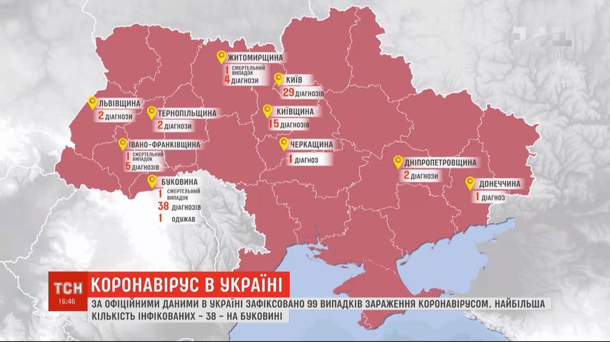 26 нових випадків зараження коронавірусом за останню добу. Найбільші цифри - 38 - знову на Буковині. Коронавірус в Україні забрав три життя. Підозрюють цей діагноз і в 65-річної жінки, яка напередодні померла в Івано-Франківську. Більше про коронавірус в Україні