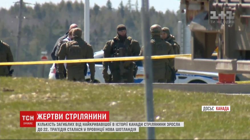 Стрілянина у Канаді. До 22 зросла кількість загиблих від найкривавішої в історії Канади стрілянини. Трагедія сталася у провінції Нова Шотландія кілька днів тому. 51-річний чоловік, який переодягнувся у поліцейську форму, роз'їжджав по селищу і хаотично стріляв по людях із гвинтівки. Більше про коронавірус в Україні