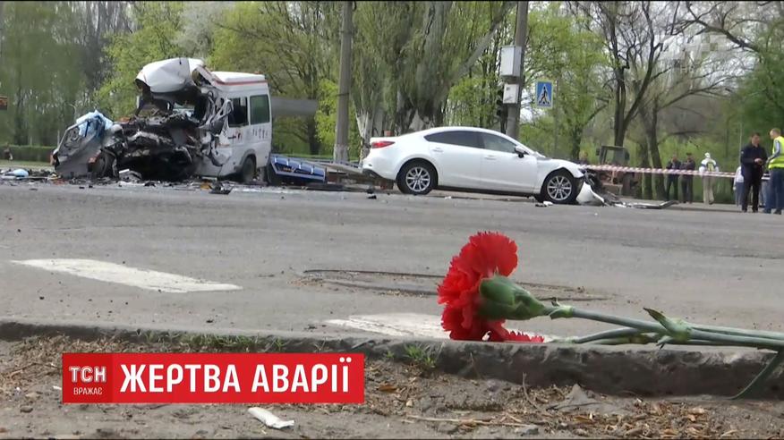 Сьогодні вранці у лікарні від травм помер 60-річний пасажир маршрутки. Він тиждень був у реанімації у вкрай тяжкому стані після того, як 17 квітня "Мазда" на великій швидкості виїхала з другорядної дороги на головну і не пропустила маршрутку, повну людей. Восьмеро людей загинули на місці, ще двоє померли у лікарні.