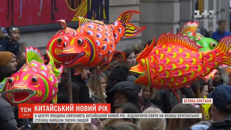Попри те, що свято минуло тиждень тому, в Лондоні тільки зараз влаштували з цього приводу святковий концерт. Вулиці прикрасили червоними ліхтариками. А Трафальгарською площею розгулювали кольорові дракони.