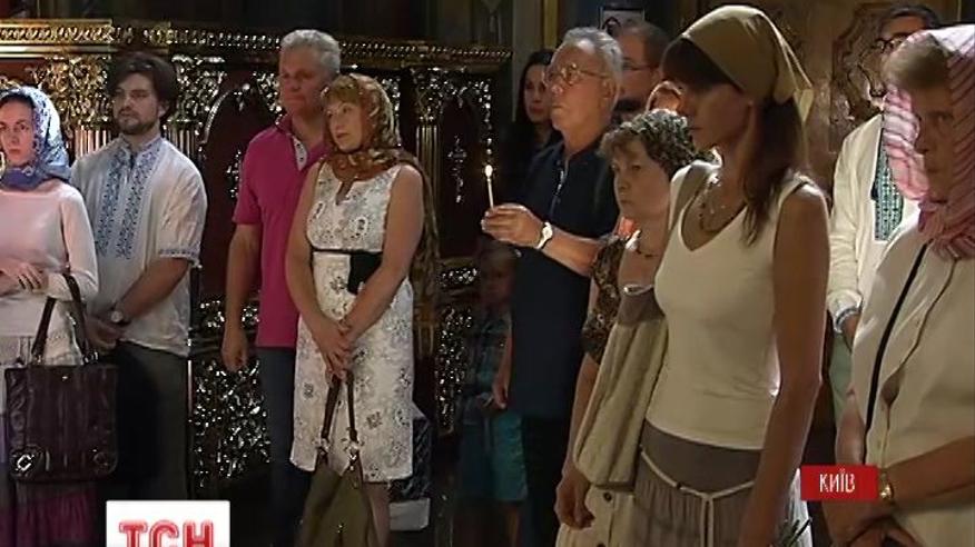 Кияни зі свічками та у вишиванках, прийшли вшанувати пам'ять померлої. Панихида відбулася вдень у Михайлівському золотоверхому соборі. Людей зібралося чимало.