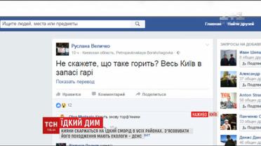 Їдкий смердючий дим оповив столицю. Смогом затягнуло усі райони. Запах гару підсилює густий туман, тож налякані мешканці у соцмережах ще з вечора скаржаться на страшну задуху. Ймовірно, гази через брак вітру просто зависли над столицею, адже про масштабні пожежі не відомо.
