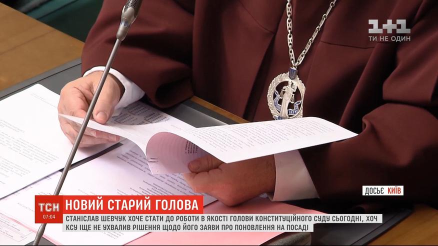 Заяву Станіслава Шевчука про поновлення на посаді, яку той приніс напередодні, почали розглядати й одразу ж оголосили перерву. Коли засідання продовжать - не повідомляють. Нагадаємо, 5 місяців тому Шевчуку - тодішньому керівнику КСУ - колеги висловили недовіру. Закидали йому незаконні призначення радників та виголошення політичних заяв.