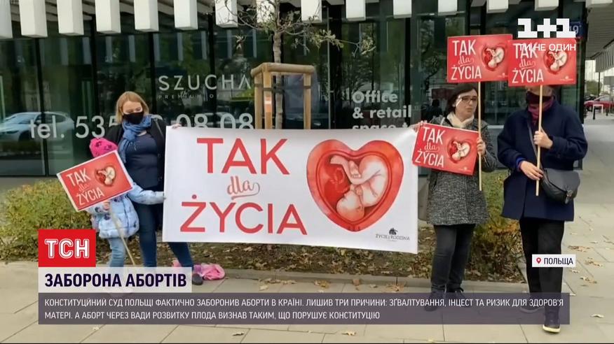 Конституційний суд Польщі фактично заборонив аборти в країні. Лишив тільки 3 підстави: зґвалтування, інцест або ризик для здоров`я матері. Переривання вагітності через вади розвитку плода визнав таким, що порушує основний закон країни. А саме з цієї причини й робилися 98% абортів. Польське законодавство у цій сфері й раніше було одним з найсуворіших у Європі. Однак нинішня влада послідовно намагалася ще більше обмежити доступ до абортів, чим щоразу викликала масові протести. Рішення Конституційного суду оскарженню не підлягає. Тим часом у Раді Європи вже назвали сьогоднішній день сумним для жіночих прав.