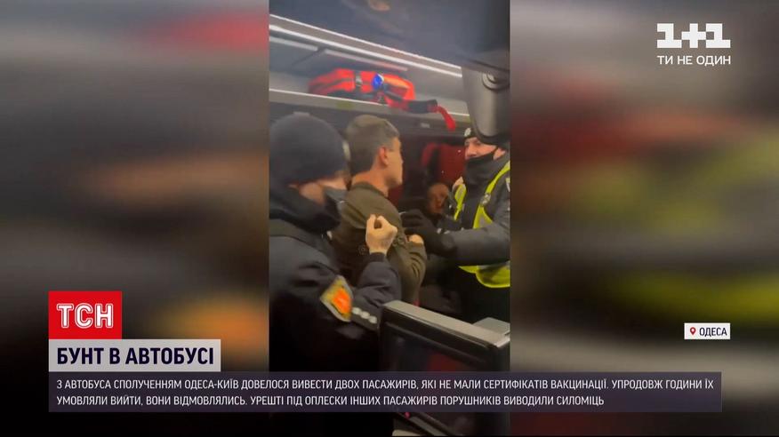Копи під оплески вивели з автобуса "Одеса-Київ" двох пасажирів без COVID-документів | Новини України