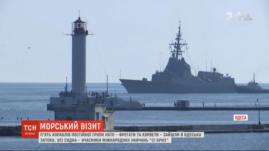 П'ять кораблів постійної групи НАТО зайшли до Одеської затоки - місця дислокації українських ВМС. Вони повернулися після активної фази міжнародних навчань "Сі Бриз" у Чорному морі. Серед них – болгарський фрегат "Бодри". Команду саме цього судна провокував під час навчань російський корабель берегової охорони. Попри спроби втручання працівників ФСБ у міжнародні навчання, вони пройшли успішно.