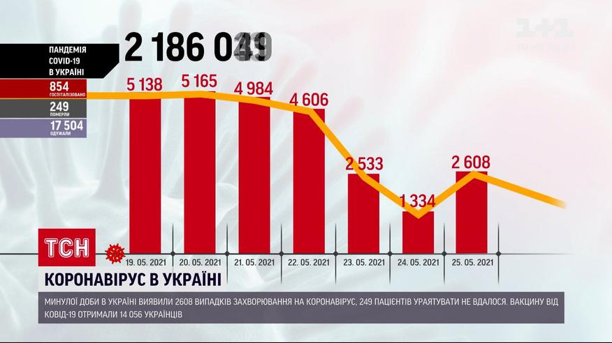 Понад 2,5 тисячі нових випадків захворювання на коронавірус виявили в Україні минулої доби. 249 людей урятувати не вдалося. Найбільше нових інфікованих - понад 400 - у Києві. У Львівській та Запорізькій області виявили по 2 сотні випадків. Вакцину від коронавірусу минулої доби отримали 14 тисяч українців.