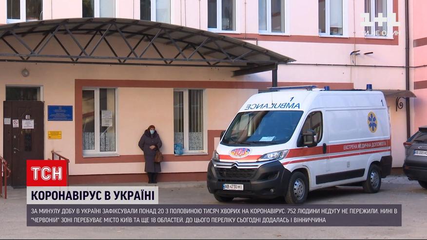 Нових хворих більше, ніж тих, хто одужав. Минула доба повернула перевагу захворілих у коронавірусній статистиці. Їх понад 20 з половиною тисяч. Майже на тисячу людей менше одужали. 752 людини недугу не пережили. Шпиталізація знадобилася майже чотирьом тисячам хворих. 88% з них, кажуть медики, не вакциновані. Нині в "червоній" зоні місто Київ та ще 18 областей. До цього переліку сьогодні додалась і Вінницька область. Останні дні щодоби там реєструють близько тисячі нових хворих. Стаціонари міських лікарень завантажені на 70%, а реанімації на 80