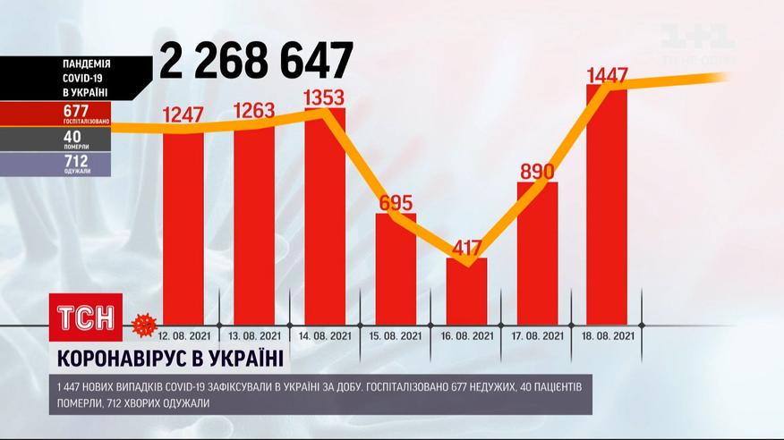 Новий сплеск кількості хворих на коронавірус в Україні. За добу, що минула, діагностували майже півтори тисячі нових випадків. Найбільше у столиці, а також у Донецькій та Одеській областях. Майже 700 недужих довелося ушпиталити. Коронавірус забрав 40 життів.