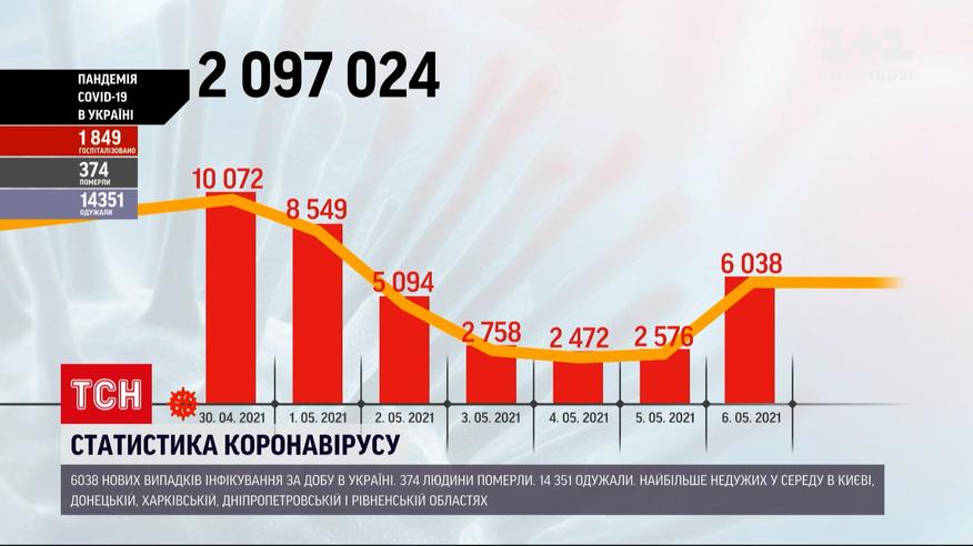 Новий стрибок у інфікуванні коронавірусом. Понад шість тисяч українців отримали позитивні тести у середу. Це вдвічі більше, ніж за попередню добу. Показник смертності теж високий - 374 осіб не пережили недугу. При цьому кількість тих, хто в середу одужав - понад 14 тисяч людей. Найбільше випадків інфікування нині у столиці, в Донецькій, Харківській, Дніпропетровській та Рівненській областях.