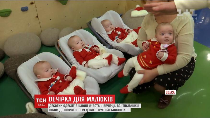 Проводять таку вечірку вперше: малечу привели, поки вони спали, аби потім мали більше енергії. Серед гостей незвичного baby-party була і відома одеська п'ятірня у супроводі батьків та старшої сестрички. Після спільних з батьками танців на руках спільна світлина на пам'ять про перший новорічний корпоратив тих, кому ще немає півроку.
