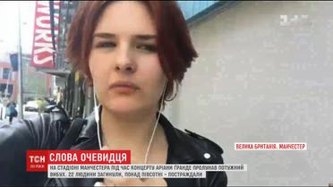 ТСН знайшла свідка нічних подій у Манчестері. Британка українського походження Ірина Канторова була неподалік арени, коли там пролунав вибух. На щастя, вона не постраждала і розповіла про побачене.