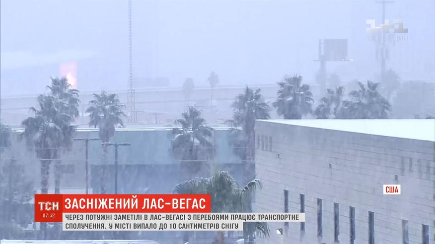 Такої хурделиці в ігровій столиці США, кажуть місцеві, вони не бачили останні десять років. В снігу нині там - пальми, входи у підземку і дороги. Через ожеледицю вже зафіксували понад 2 десятки автомобільних аварій.