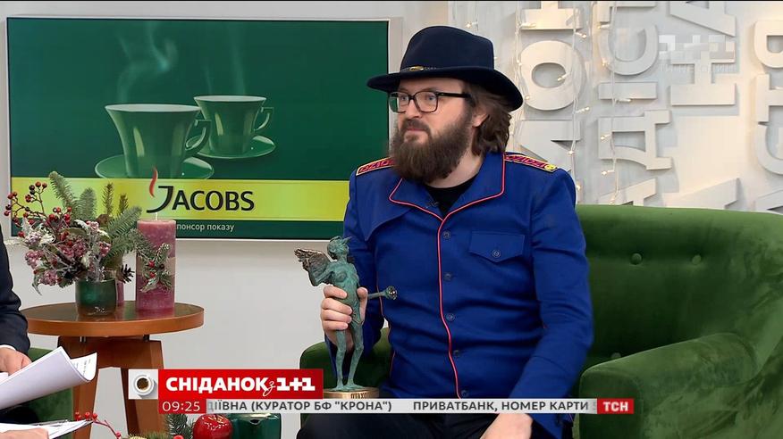 В гості до Сніданку несподівано завітав Михайло Хома – лідер гурту DZIDZIO. Музикант розповів про благодійність та учать Дзідзьо у проекті "Здійсни мрію". Михайло запропонував оригінальний лот – скульптуру "Птахоподібна". Також він розповів про хлопця, з яким познайомився завдяки 1+1. Тепер він піклується про Михайлика.