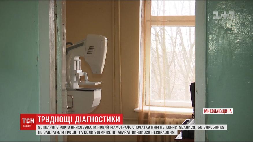 У Первомайській лікарні новий апарат для ранньої діагностики онкології молочних залоз не пропрацював жодного дня. Він надійшов ще у 2012 році, і на ньому жінки міста мали обстежуватися безкоштовно. Але апарат простоював на холодному складі. А жінки змушені були за гроші робити мамографію в приватній клініці.