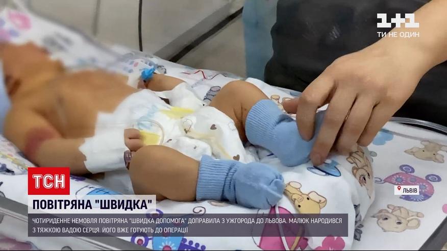 Чотириденний малюк народився із складною вадою серця. Через добу почав синіти і задихатися. Ужгородські лікарі пологового забили на сполох, викликали зі Львова гелікоптер і доправили хлопчика до дитячої лікарні. Мама дитини не вірила що таке можливе, бо повітряну швидку до того бачила лише в кіно. Про операцію з порятунку найменшого пацієнта аеромедичної евакуації розкаже ТСН.