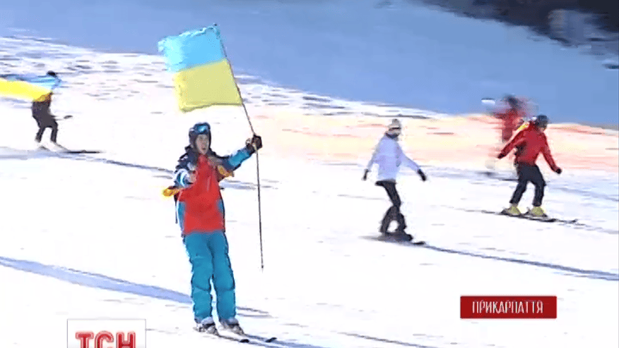 Лижний сезон у Буковелі розпочався патріотичним флешмобом
